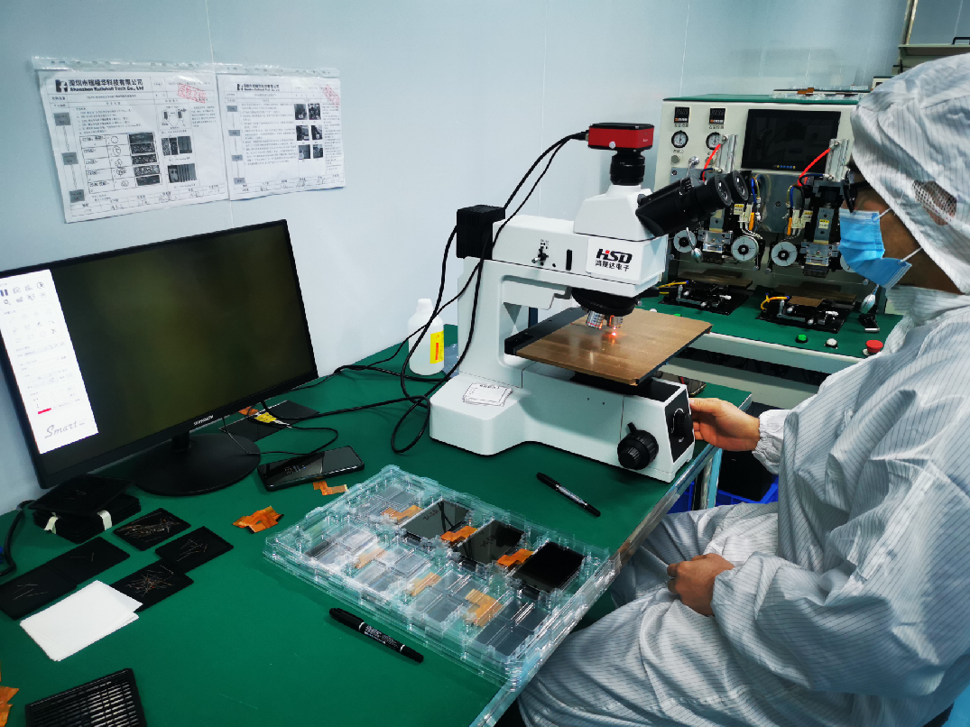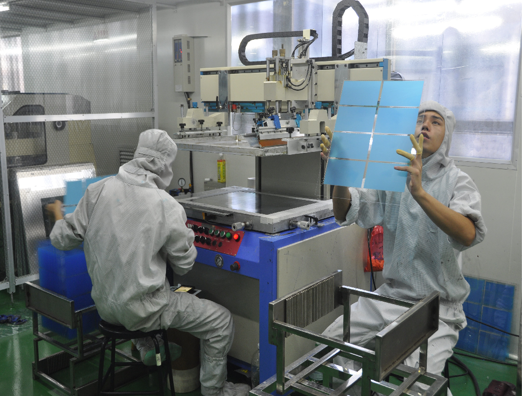 二つの工場の面積は合計3000平方メートルである。年間生産能力は500万枚で、タッチスクリーン、液晶パネルの自動生産ラインが有り、パネルの材料カット、CNC、印刷、鋼化、タッチ機能シートの印刷、レーザー/シルクエッチング、FPCの接着、バックライト生産から、最後の貼り合わせ、組み立てまでである。
